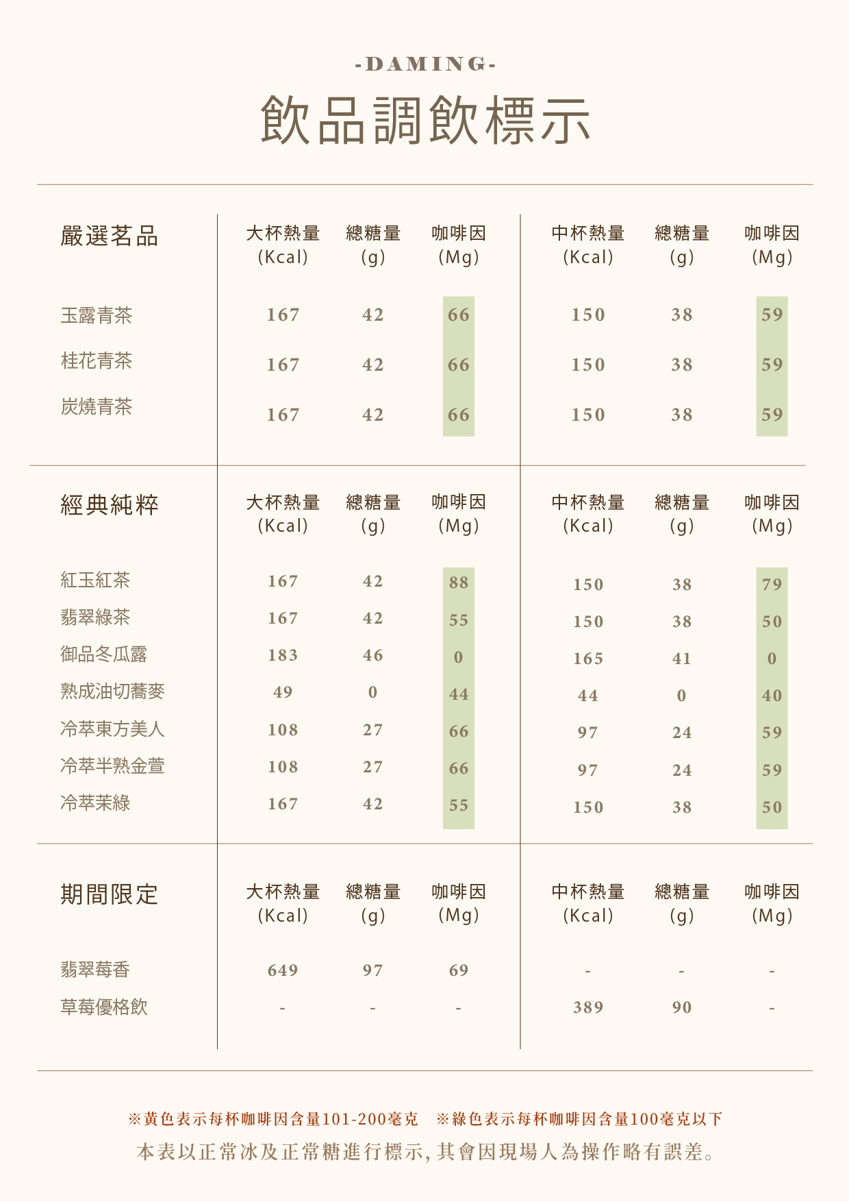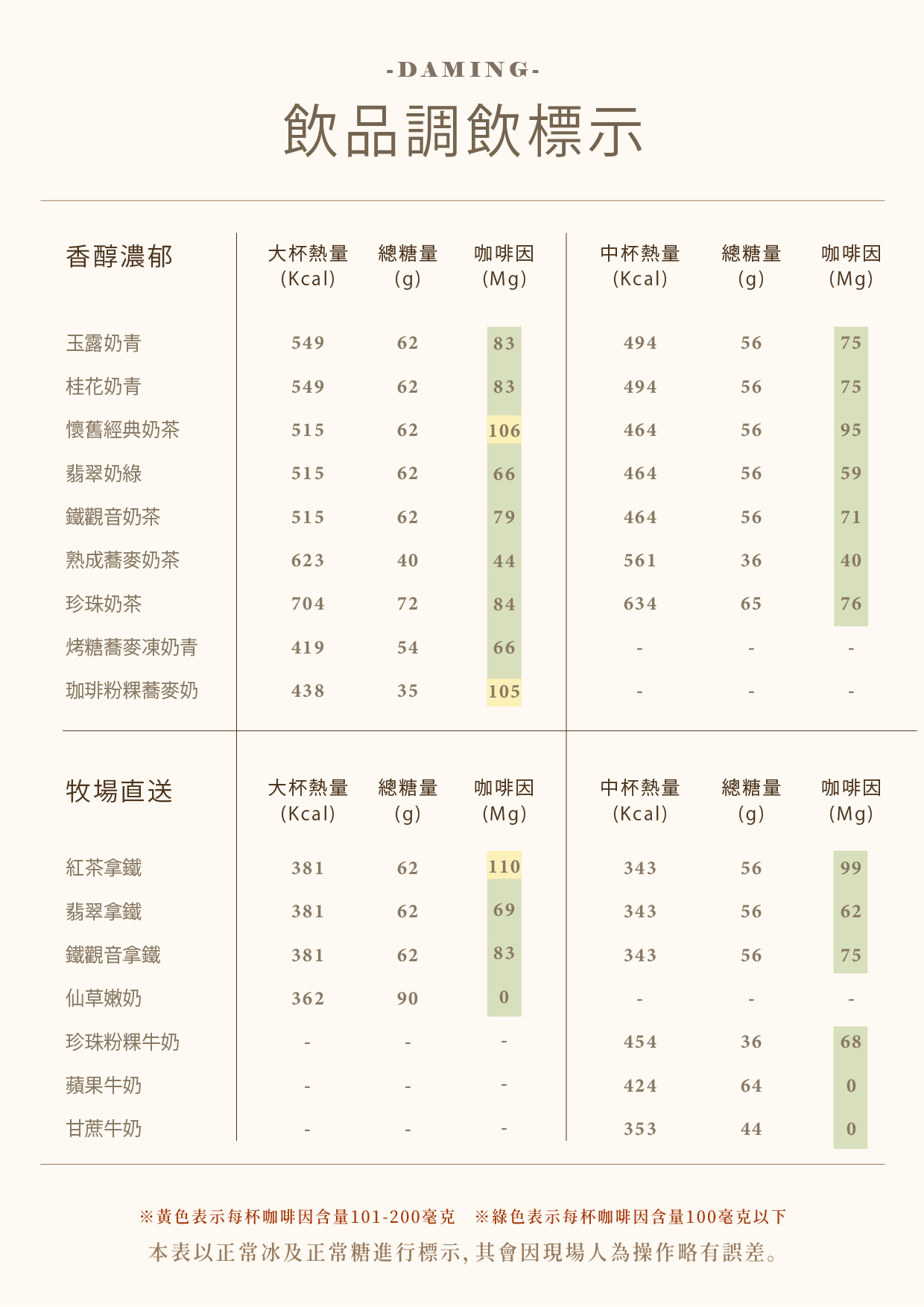 飲品調飲標示
