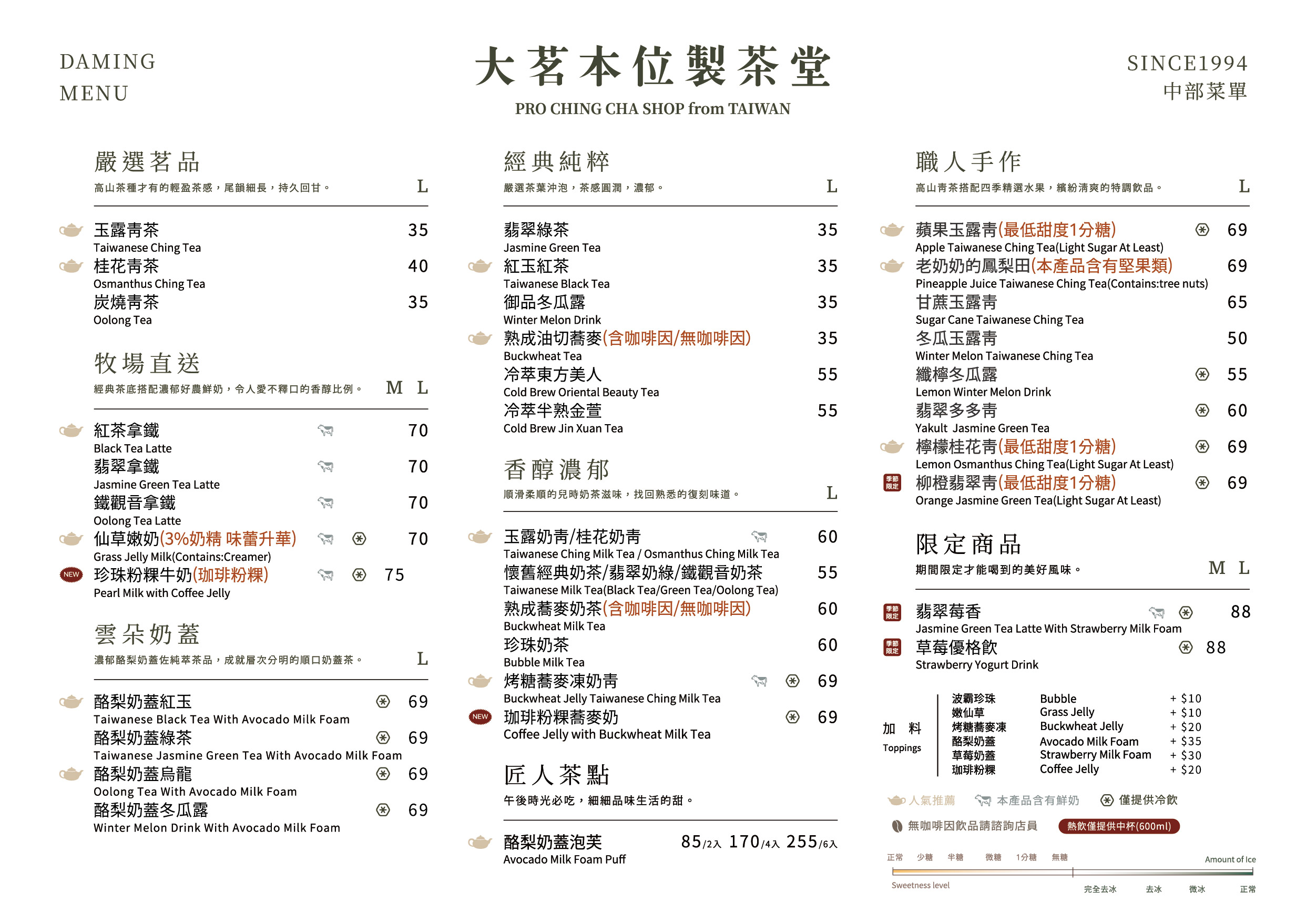 中南部菜單
